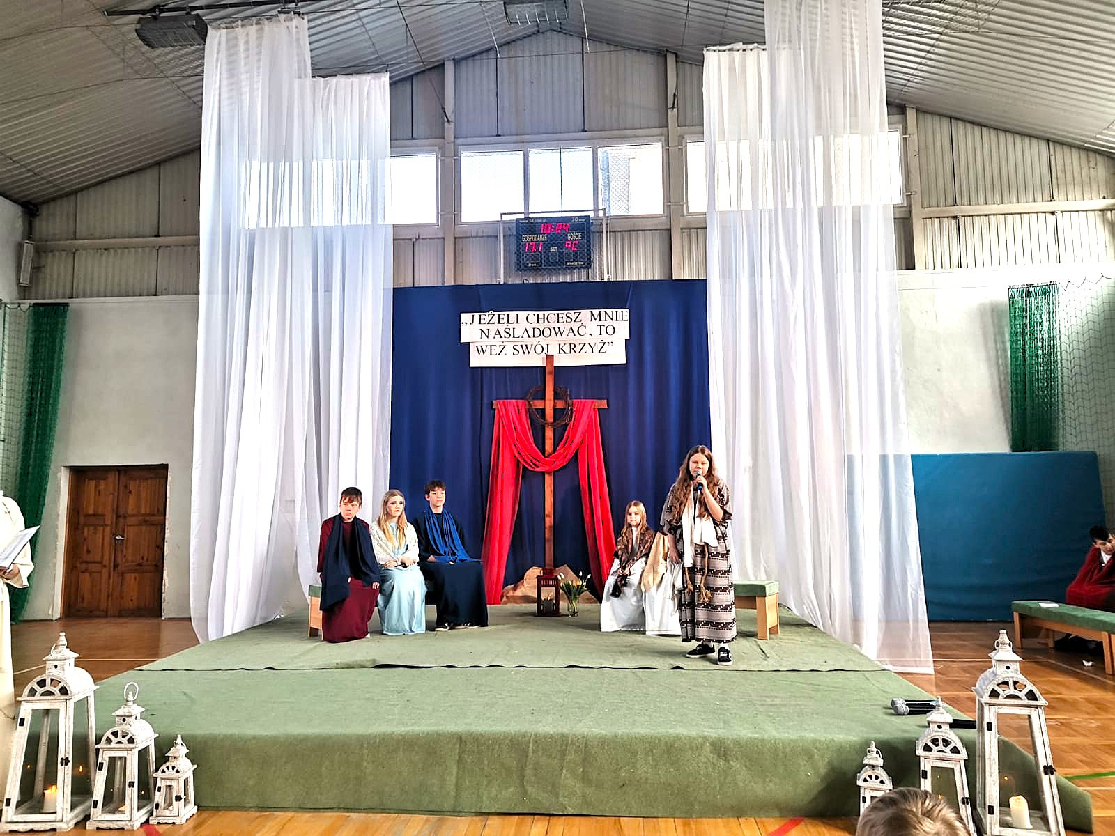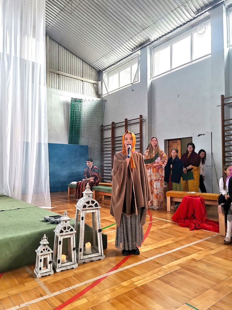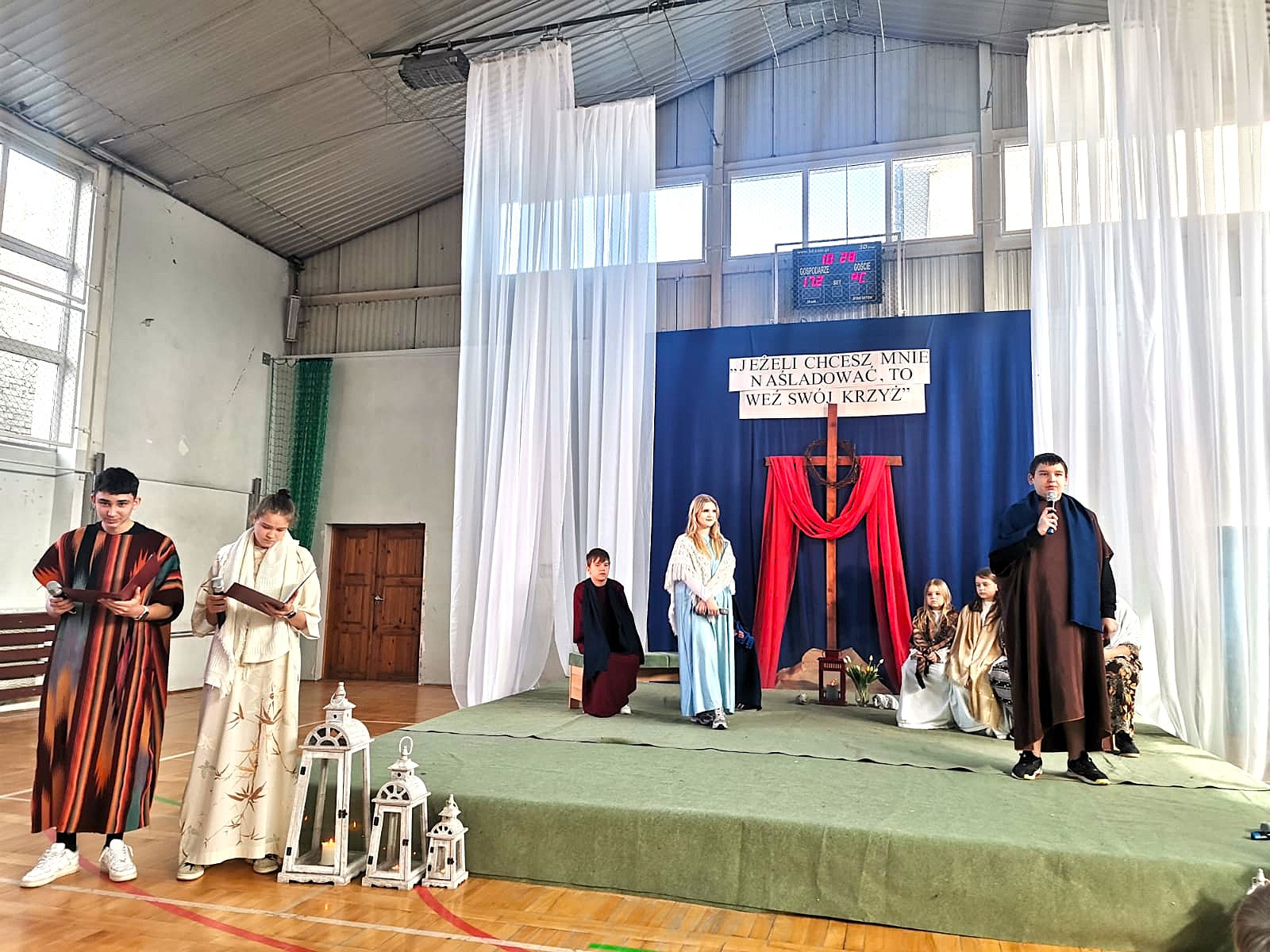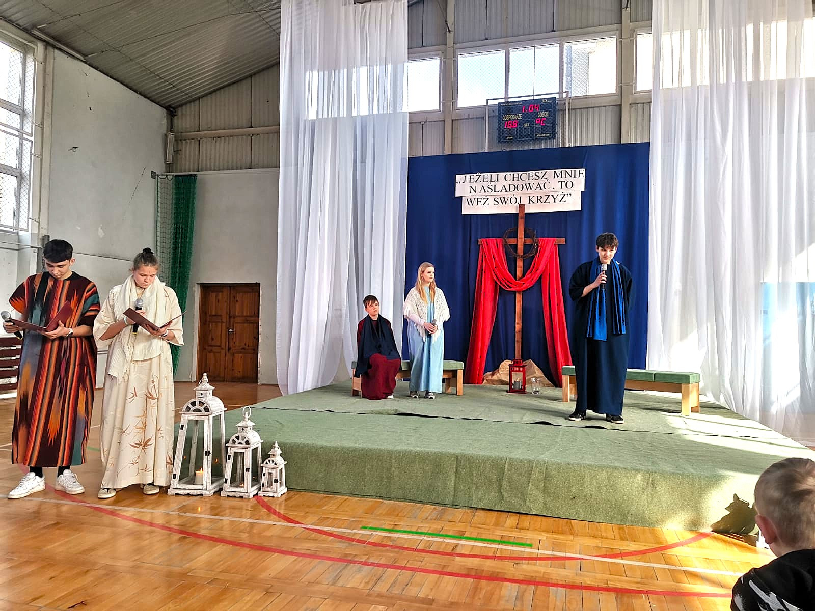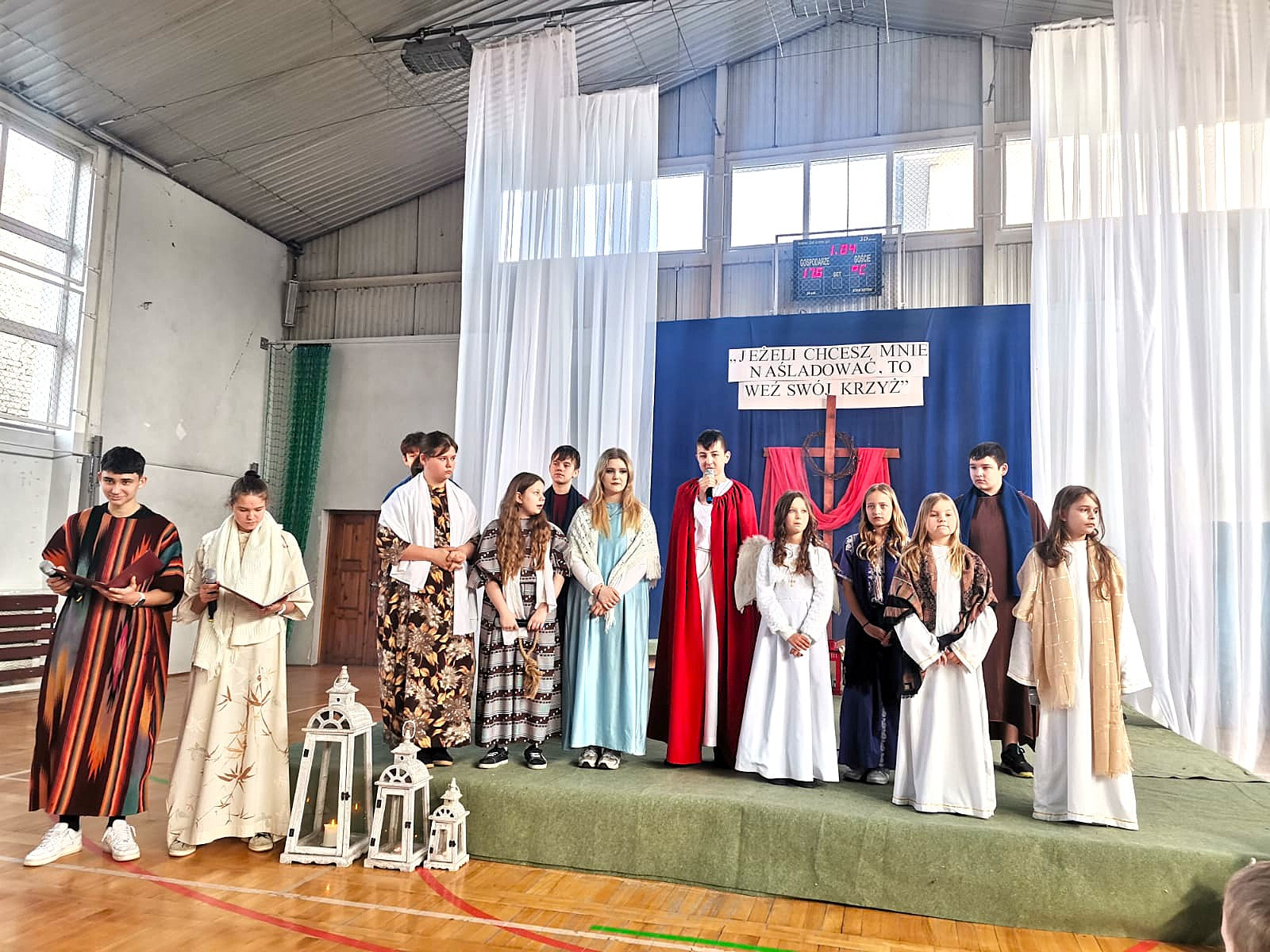 Uczniowie naszej szkoły w niezwykle poruszający sposób przedstawili historię męki, śmierci i zmartwychwstania Jezusa Chrystusa. W przedstawieniu nie zabrakło scen biblijnych, refleksyjnych tekstów oraz wspólnego śpiewu, które wprowadziły wszystkich w atmosferę zadumy i nadziei.
