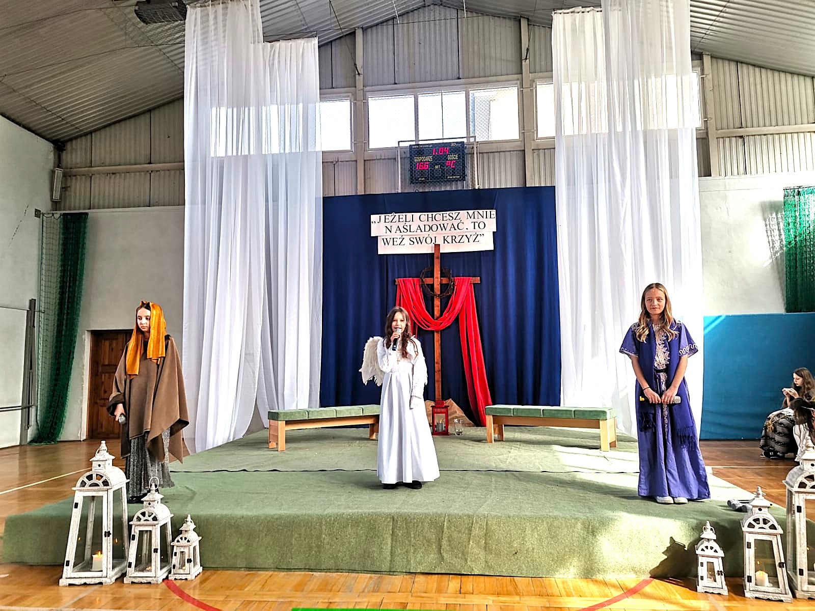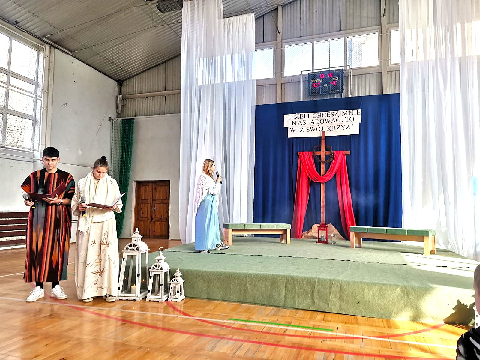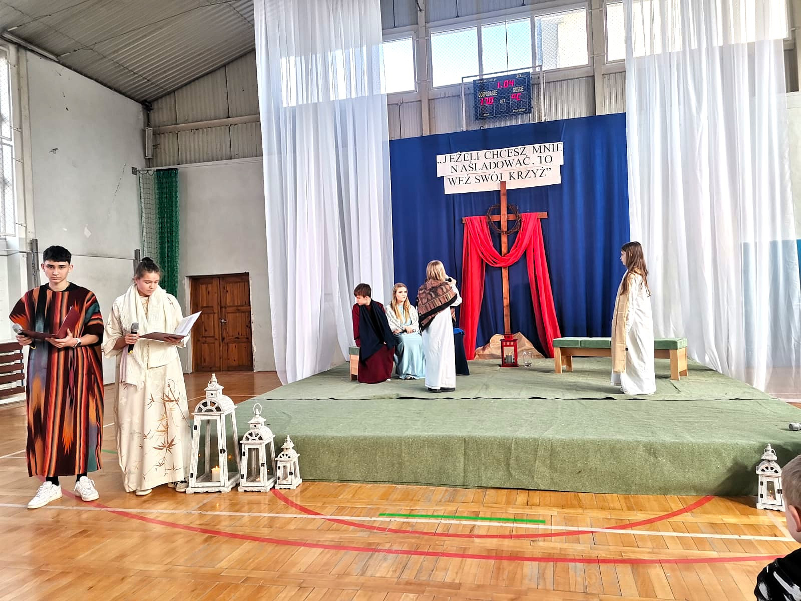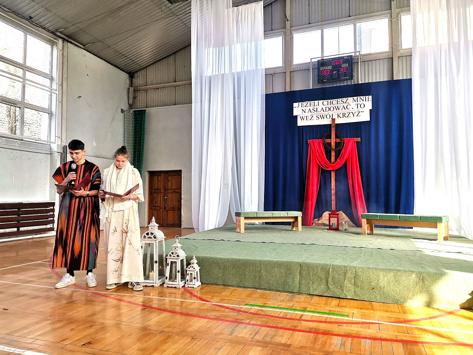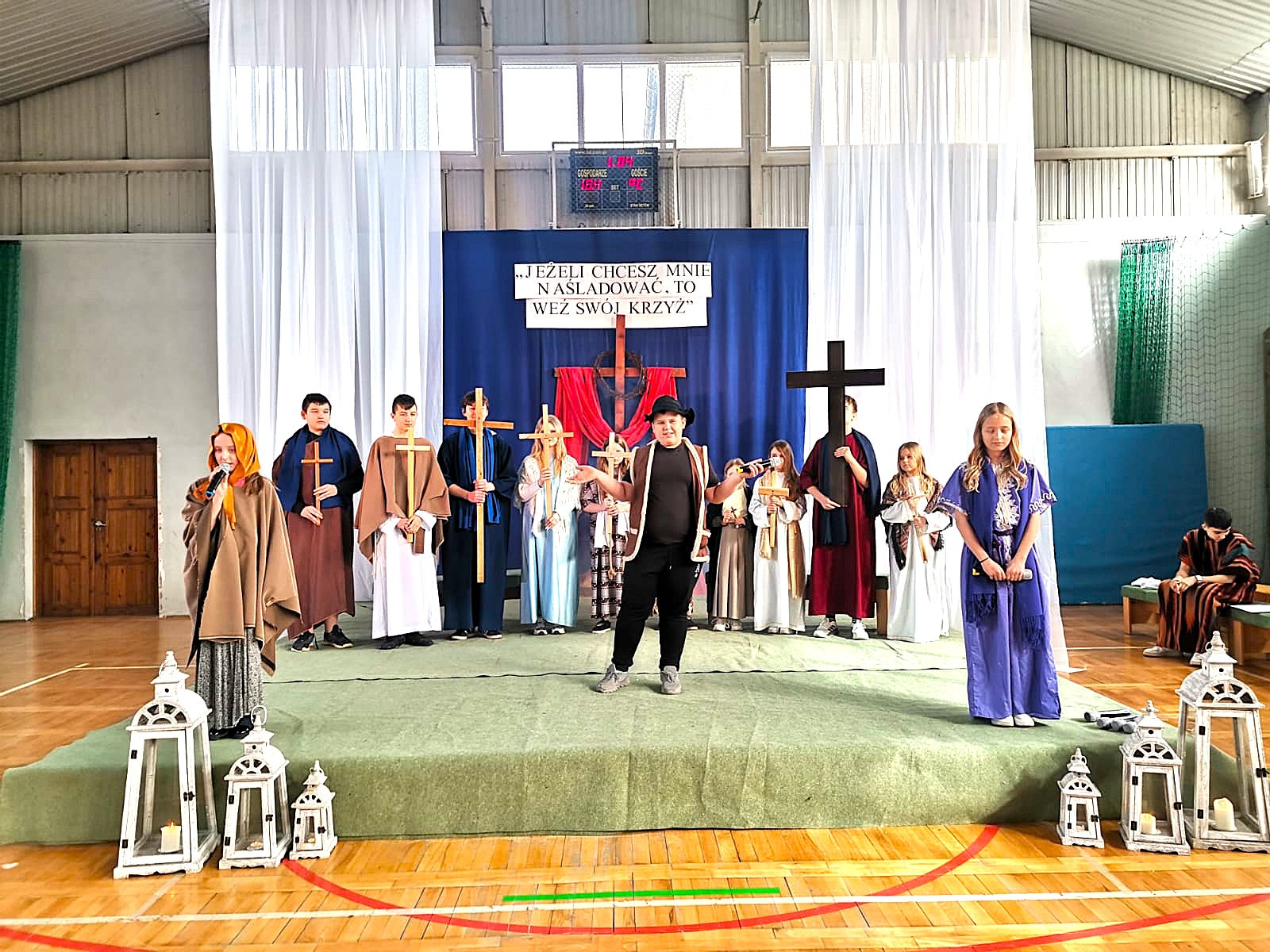 Uczniowie naszej szkoły w niezwykle poruszający sposób przedstawili historię męki, śmierci i zmartwychwstania Jezusa Chrystusa. W przedstawieniu nie zabrakło scen biblijnych, refleksyjnych tekstów oraz wspólnego śpiewu, które wprowadziły wszystkich w atmosferę zadumy i nadziei.