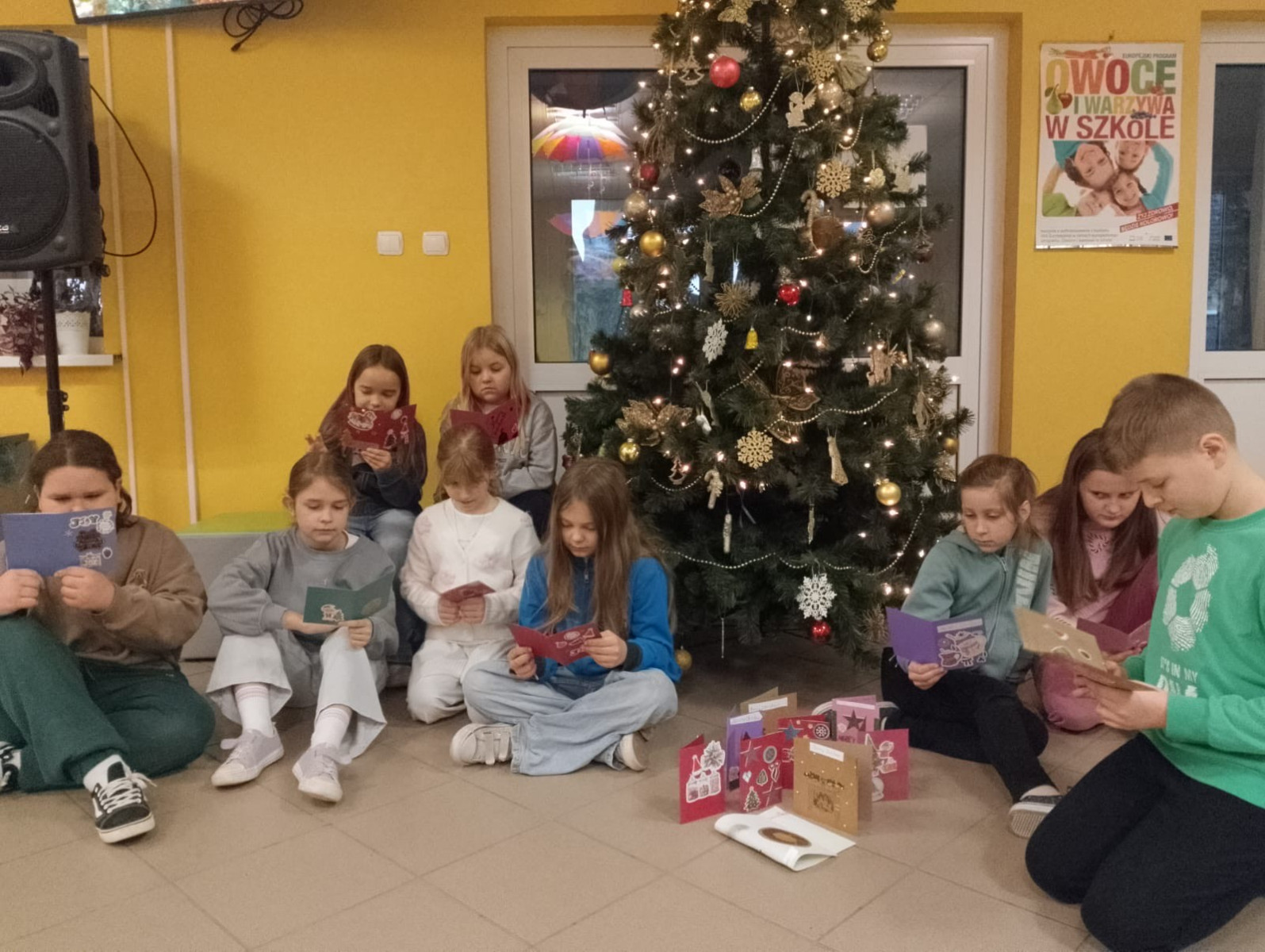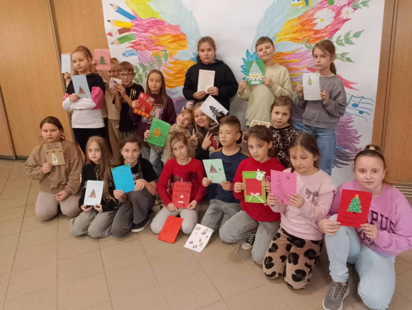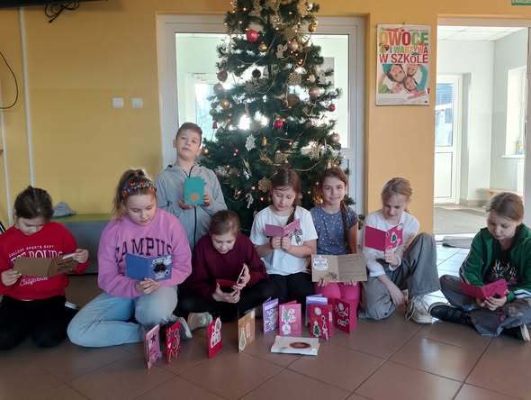 Nasze dzieci otrzymały kartki wykonane przez nich. Akcja odbywa się w całej Polsce, a jej celem jest doskonalenie struktur w języku angielskim.